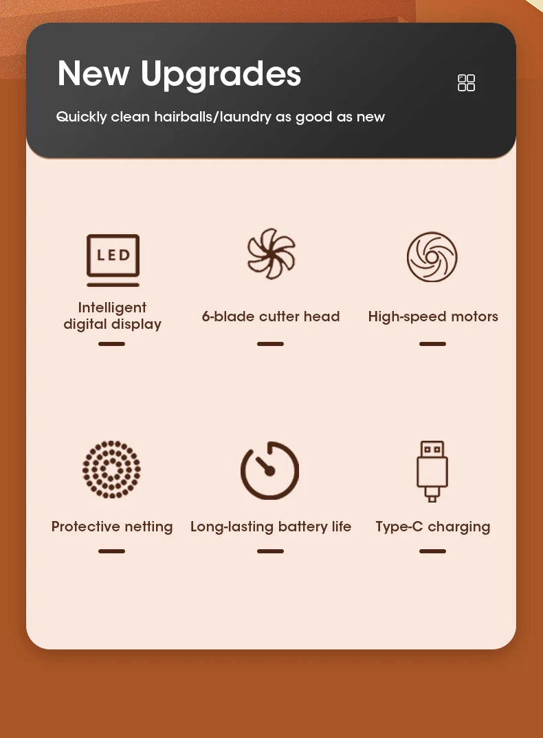 Say goodbye to tired, bobbled clothing and hello to a freshly groomed wardrobe with the FluffAway Pro – Digital Fabric Lint Shaver. Designed for both performance and precision, this smart defuzzer features a powerful motor, 6-leaf precision steel blade and a sleek LED digital display, making it the perfect grooming tool for sweaters, coats, furniture, and more.