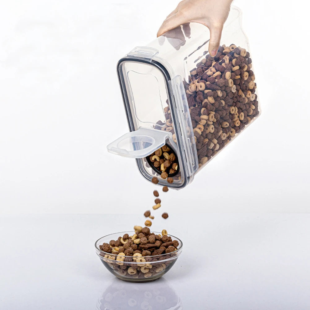 Whether you’re storing grains, cereals, pasta, or snacks, FreshLock containers ensure your ingredients stay perfectly sealed and ready to use. The crystal-clear body lets you see contents instantly, while the flip-top spout and built-in measurement scale provide effortless pouring and portion control — no mess, no waste.
